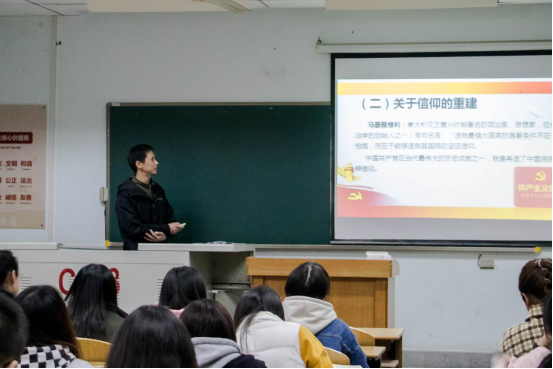 危煜祥以“一名共产党员应有的修养”为题,从政治修养、知识修养、人格修养等三个方面作了解读。在讲到政治修养时,他希望同学们树立崇高的价值理想,从“为什么要信仰马克思主义”“信仰的重建”两个方面,讲述了马克思的为人和他的理想,以及马克思主义理论的内涵和对我国建设发展带来的深远影响;分析了苏联东欧社会主义失败的内外部原因以及对我国的启示,解读了香港局势和党的十九届四中全会精神。