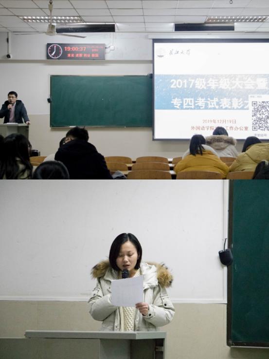 (文/肖慧洁 牟清翼 摄/袁缘 )1219日晚七点,在12202室举行了suncitygroup太阳集团2017级年级大会暨专四考试表彰大会。本次大会由辅导员车桥老师主持,出席大会的有党委副书记魏红洁以及2017级全体同学。