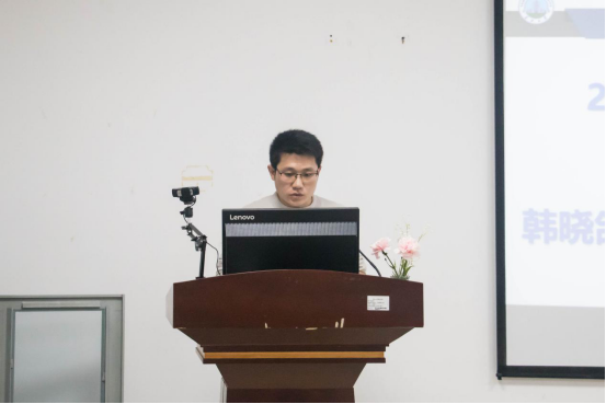 拍照留念后大会进行到第三项,车桥老师作出外出实习的事项说明。车老师分别对实习的性质,实习与就业关系,实习经历,办理外出实习手续四个方面展开说明。他还告诫同学们,活在当下,做好当下最重要的事情;走到工作岗位,要用自己的实力和能力去说话。紧接着,彭沂老师上台讲话。他提出大家作为英语专业的学生,要接受新的变化,接受新的时代,顺应时代要求,完美的完成学习和生活。