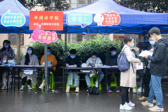 在对迎新点的视察中,校领导院领导和老师们看到即使下雨不止,但负责迎新工作的学生会和志愿者们仍有条不紊的进行迎新工作,领导和老师们对这种认真负责的态度大加赞赏,并鼓励我院学生会和志愿者们继续努力,更好的做好新生的报到工作,给新生留下一个美好的入学体验。