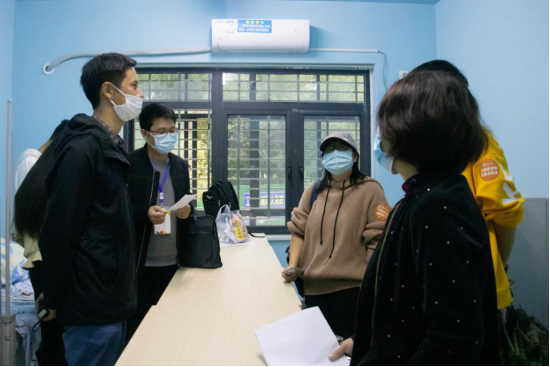 /袁缘 文/范期明9月21日下午三点,我院2020级新生迎新活动已进行至第二天,为进一步了解学院的迎新工作并掌握新生入学适应情况,我校学生工作处副处长张涛老师,我院院长谈宏慧老师、党委书记危煜祥老师,党委副书记魏红洁老师、以及辅导员童超老师,车桥老师,许泽琼老师对我院的迎新点和新生宿舍进行了视察和走访。