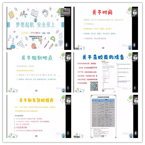 (通讯员:刘庸)根据学校迎新工作方案中“科学防控,安全有序,热情周到,便捷高效”的总体要求,保证我院新生顺利安全报到,9月13日上午9点,学生工作办公室通过腾讯会议面向分别面向20级本科新生和家长、20级研究生新生和家长召开了以“梦想起航 安全至上”为主题的新学期第一次班会。本科生会议由20级新生辅导员童超老师主持,学工办刘庸老师和329位学生和家长参加了会议。研究生会议由研究生辅导员许泽琼老师主持,51名研一新生和他们的家长一起参加了会议。
