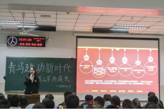 本次会议主旨是让更多的同学了解、走近、熟悉青马班。主持人肖冲率先为大家讲解了什么是青马班,青马班的核心、文化和理念等。她提到,suncitygroup太阳集团青马班自2006年创办以来一直宣扬“零点起跑,事事争先,选择优秀,追求卓越,艰苦奋斗,为国效力”的班级文化,培养了一批又一批信仰坚定、理想远大、视野开阔、德才兼备、尽忠职守、堪当重任的优秀学员。在主持人肖冲结束“青马班是什么”的讲解后,另一位主舒勇介绍了青马班的主要实践活动,并表示,青马班是一个团结的集体,能真正做到“聚是一团火,散是满天星”。