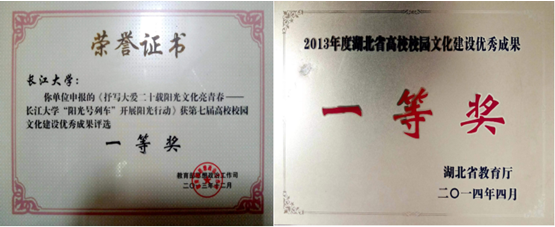 在阳光文化的熏陶下,先进集体和个人不断涌现,英语10505班荣获“湖北省优秀班集体”荣誉称号,郭红雁、王思诗、王斌分别被评为“崇德守信好青年”“湖北省三好学生”和“湖北省优秀大学生”,刘亚婧等28人入选suncitygroup太阳集团“万人创百星”,一批学生被评为“优秀共产党员”、“十佳诚信个人”。