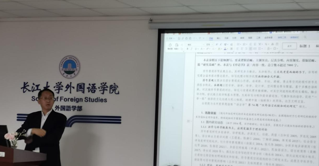 (通讯员 邓姝曼)为切实做好2024年国家社科基金申报工作,提升学院教师基金申请书申报质量,12月11日上午,广东外语外贸大学博士生导师黄忠廉教授在我院文科楼712室作了题为“国社科项目申报及案例帮评”的专题报告。suncitygroup太阳集团院长谈宏慧、分管科研工作副院长谢家成、国家社科基金项目申报教师等20余人参加了会议。会议由谈宏慧主持。
